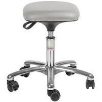 Tabouret avec base Alu50 en aluminium. Base élégante et facile à nettoyer en aluminium avec un diamètre de 500 mm. Tetra a un siège carré, permettant une nouvelle position assise. Le siège peut pivoter et est très moelleux grâce au rembourrage supplémentaire. La hauteur du siège est facilement réglable avec une sangle en cuir véritable.