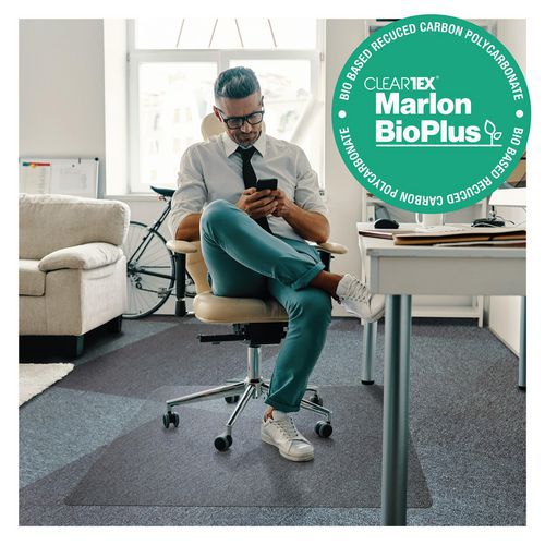 Avec une résistance aux chocs deux fois supérieure à celle du PVC, le polycarbonate BioPlus offre une excellente protection à long terme des revêtements de sol contre l'usure et les dommages permanents causés par les roulettes de chaise.