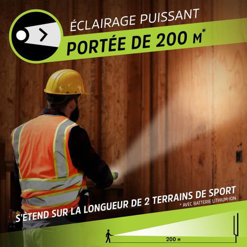 Technologie LED : Cette lampe torche LED de 500 lumens* comprend un IRC élevé pour une clarté des couleurs haute définition *Avec batterie lithium-ion.