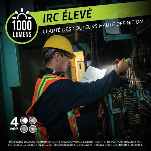 Technologie LED : Cette lampe torche LED de 1000 lumens est dotée d'un IRC élevé pour une clarté des couleurs haute définition, idéale pour tout projet.