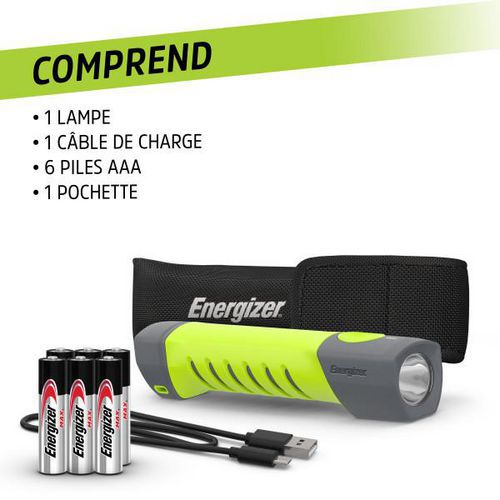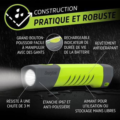 Heures d'autonomie : Cette lampe torche Energizer fiable et durable peut briller jusqu'à 20 heures en mode basse intensité* *Avec batterie lithium-ion.