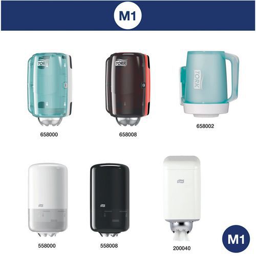 Mini bobine d'essuyage Tork Plus M1 multi-usages. Emballage ergonomique en carton facile à transporter, à ouvrir et à jeter. Essuie-mains à absorption élevée résistant à l'humidité. Séchage hygiénique des mains avec sensation agréable au toucher.