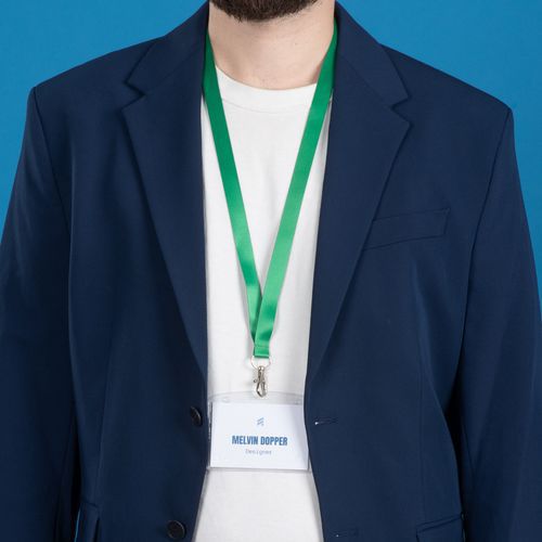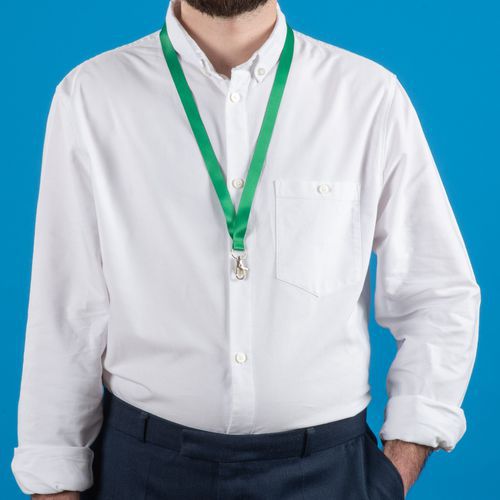 Tour de cou Avery satiné, large et plat, doux au toucher et confortable à porter. Mousqueton standard pivotant. Clip de sécurité qui se détache en cas de traction excessive pour éviter tout risque d'étranglement.