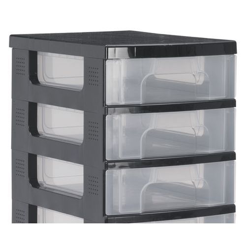 Ladeblok montée sur 4 roulettes pour une maniabilité maximale. Tiroirs transparents pour une meilleure visibilité du contenu. Hermétiques pour une protection maximale contre la poussière. Tour avec zones perlées sur le côté pour un étiquetage facile. Fabriqué au RU