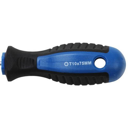 Tournevis pour vis Torx. Manche ergonomique bi-matière offrant confort et bonne prise en main. Extrémité du manche arrondie adaptée à la paume de la main. Lame ronde en acier chrome vanadium avec traitement anti-corrosion très robuste et empreinte traitée brunie pour un meilleur rendu en termes de flexion et de torsion. Garantie client : 10 ans