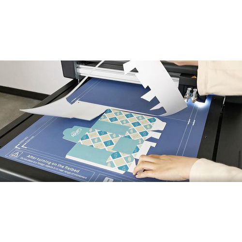 Idéal pour les petites et moyennes séries et pour les échantillons de boîtes d'emballage, de cartes, etc. : découpe et perforation, découpe à l'emporte-pièce, découpe en biseau et rainage. Accepte une très grande variétés de supports : papier, carton, cuir, plastique, etc.