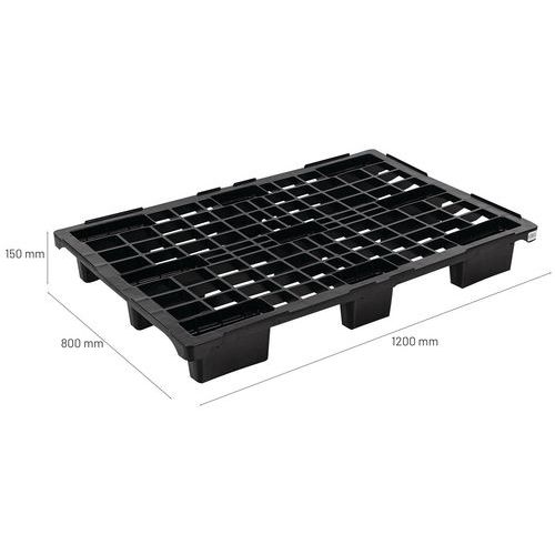Transpalette manuel avec fourche de longueur 1150 mm avec hâssis en acier ultrarésistant, pour un usage intensif. Timon confortable revêtu de caoutchouc et levier 3 positions : levage, position neutre et descente. Équipé de roues directionnelles et de roues à fourche tandem en polyuréthane. Livré avec 30 palettes légères emboîtables 1200x800 mm, ergonomiques, légères et fabriquées en matériau recyclé, non poreux. Construction des palettes entièrement monobloc, ultra hygiéniques : lavables au nettoyeur haute pression et désinfectables (moulées en 1 seule pièce). Palettes PEhd recyclé 6 entrées, 9 plots, idéales pour l'industrie pharmaceutique, agroalimentaire et la grande distribution