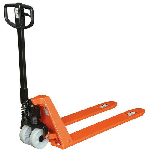 | Intitulé du produit | Transpalette manuel surbaissé, Force: 1000 kg, Roue directrice matériau: Nylon, Fourche longueur: 1150 mm |