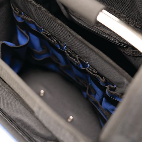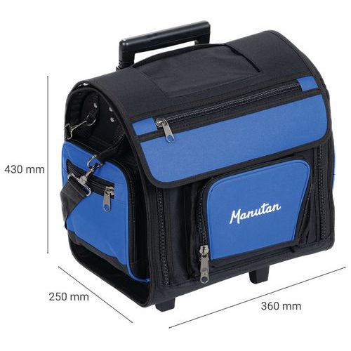 - Valise trolley textile pour outils, résistante à l'eau, l'usure et aux accrocs.