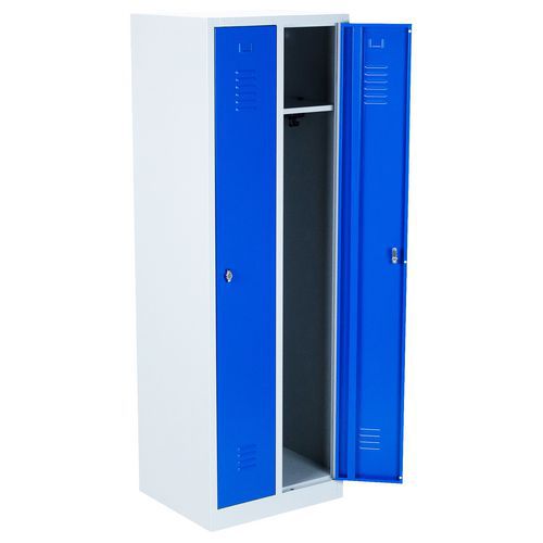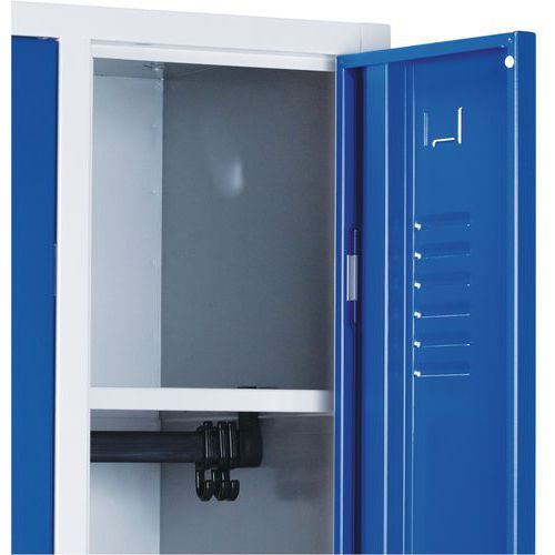 Vestiaire acier robuste à portes renforcées. Ouverture optimale à 180° et charnières invisibles. Hygiénique avec une aération haute et basse des portes. Perforations pour accroche murale, porte-étiquette embouti. Tôle épaisseur structure : 7/10e Garantie client : 10 ans