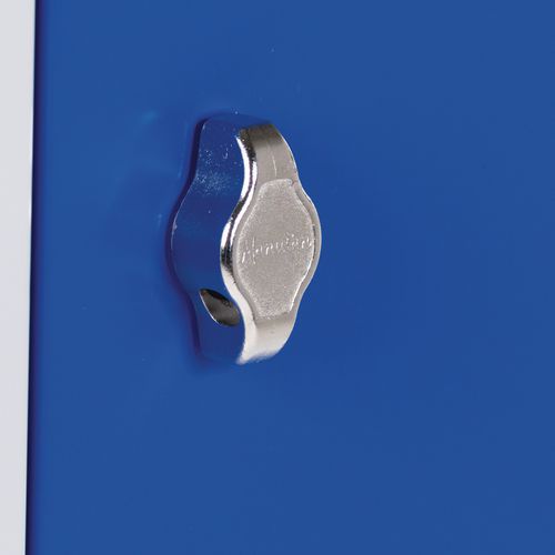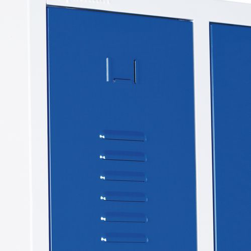 Vestiaire acier robuste à portes renforcées. Ouverture optimale à 180° et charnières invisibles. Hygiénique avec une aération haute et basse des portes. Perforations pour accroche murale, porte-étiquette embouti.
