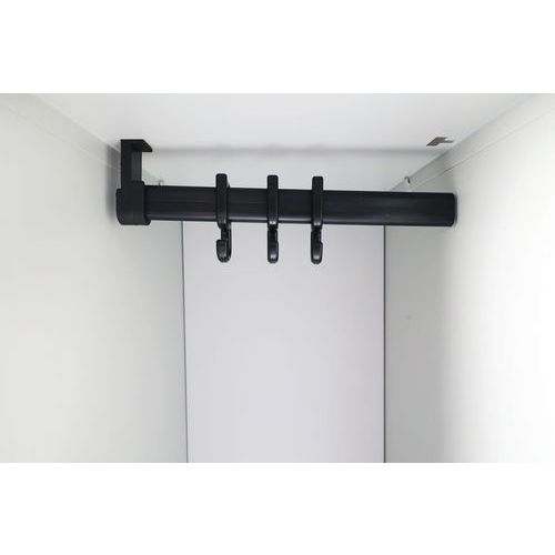 Étagère supérieure équipée d'1 tringle à 2 crochets et penderie en partie inférieure.
