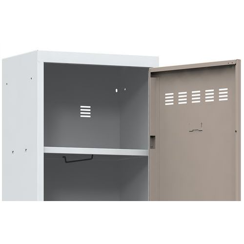 Vestiaires moderne alliant qualité, sécurité et design. Soudés en usine pour assurer une robustesse optimale. Doté d'une qualité très élevé de résistance à l'effraction. Conseils de sécurité : - installer le meuble sur une surface plane - le fixer sur un mur ou une cloison avec une fixation adaptée - veiller à ne pas dépasser la charge maximum conseillée, ainsi qu’à sa bonne répartition
