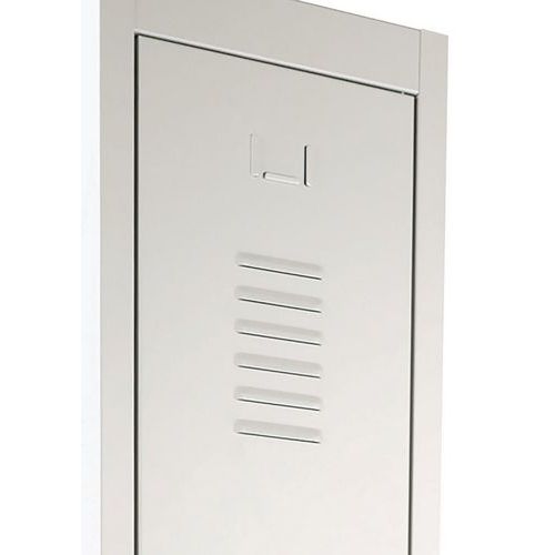 Vestiaire d'entrepôt robuste spécial industrie salissante, livré à plat, entièrement démonté. Construction en métal durable avec belle finition revêtement poudre électrostatique. 1 casier haut, 1 penderie inférieure divisée en 2 compartiments par une paroi. Porte renforcée avec charnières invisibles, anti-bruit avec tampon plastique. Porte à double persienne pour circulation d'air et porte-étiquette estampé. Vestiaire confortable d'utilisation avec large ouverture de porte à 115°.