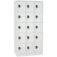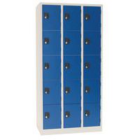 Vestiaire à multiples casiers de belle finition peinture époxy. Angles à coin arrondi pour une sécurité maximale. Pratique, revêtement ultra-résistant aux rayures. Fermeture silencieuse avec les butées plastique. Fente d'aération au dos de chacun des casiers. Poignée de fermeture avec porte-étiquettes.
