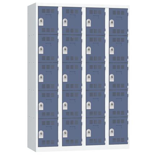Vestiaire multicases 1 à 4 colonnes avec cases superposées par colonne. De type monobloc, il est soudé en usine pour plus de robustesse et de rigidité. Économique et fonctionnel, grâce à ses larges cases. Permet de ranger différents types d'équipements ou objets. Convient pour les écoles, centres sportifs, hôpitaux, entreprises, secteur tertiaire comme industriel, etc