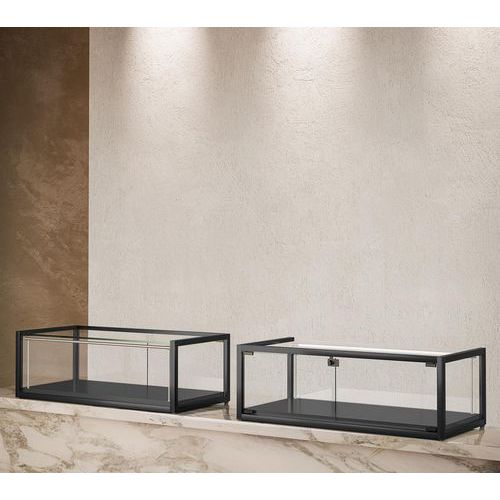 Vitrine exposition à poser, Socle coloris: Noir, Hauteur: 32.5 cm, Largeur: 95 cm, Profondeur: 45 cm