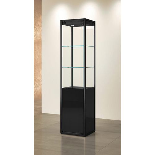 Vitrine exposition avec rangement, Socle coloris: Noir, Hauteur: 190 cm, Largeur: 45 cm, Profondeur: 45 cm