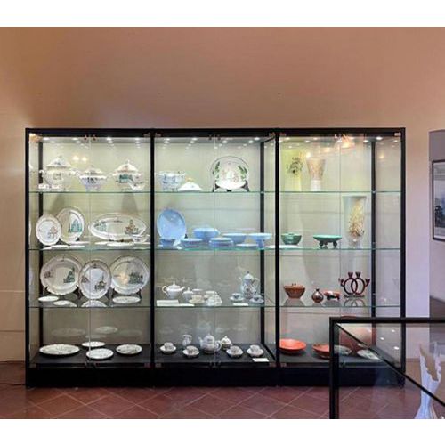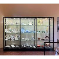 - Vitrine d'exposition haute avec éclairage au plafond.