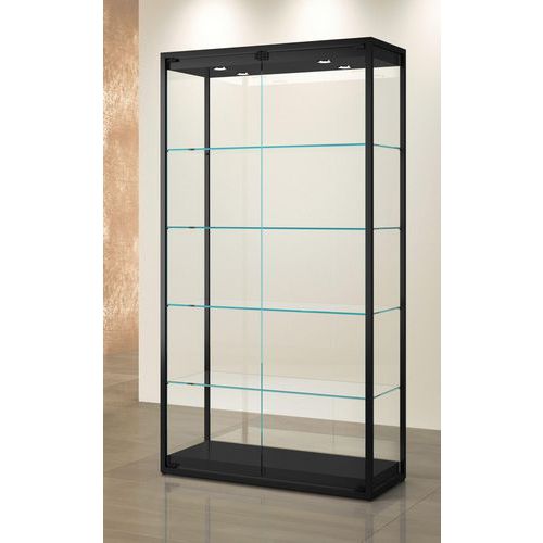 Vitrine exposition haute, Socle coloris: Noir, Hauteur: 190 cm, Largeur: 95 cm, Profondeur: 45 cm