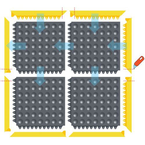 - Abgeschrägte Kanten zum Zuschneiden nach Bedarf mit dem Cutter.